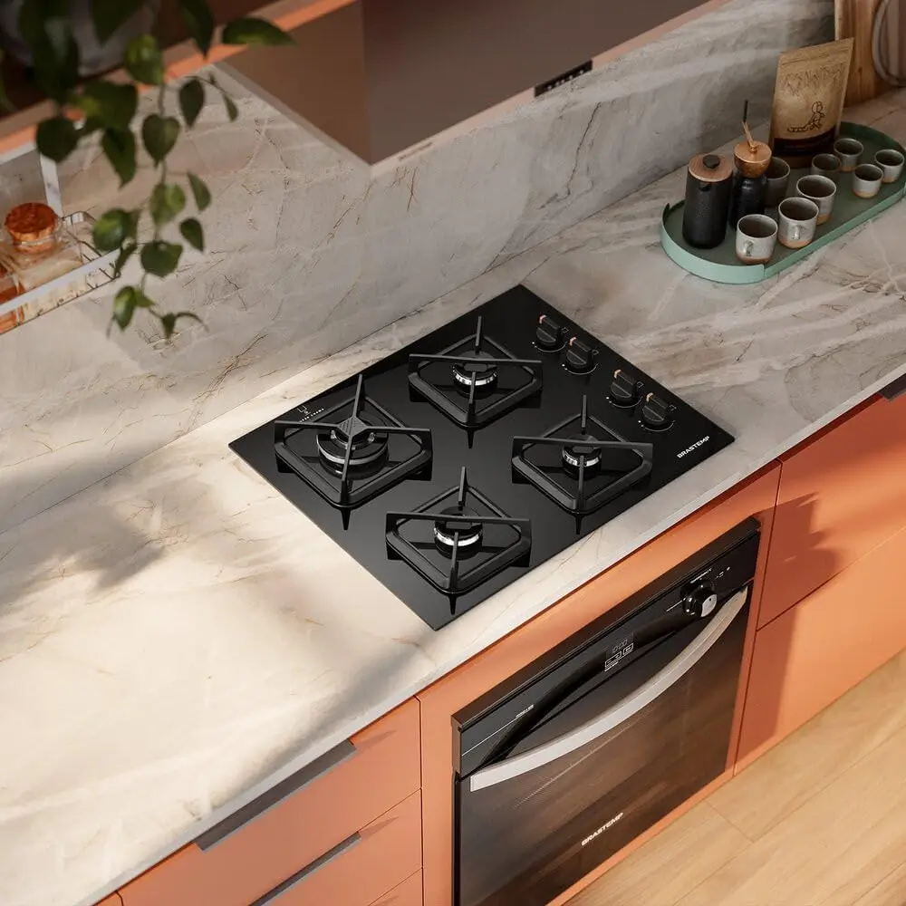 O visual sofisticado do cooktop dá um toque premium à cozinha, combinando com estilos minimalistas, industriais ou gourmet e valorizando o ambiente.