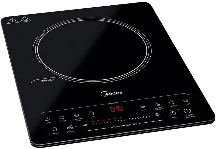 O modelo da Midea ganhou popularidade pelo design slim e sensor de panela eficiente. É leve e fácil de guardar em caixas organizadoras de camping.
